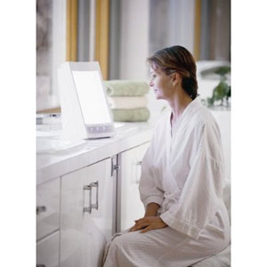 Световая терапия предполагает воздействие интенсивного света при определенных условиях. Рекомендуемые для светотерапии системы состоят из набора люминесцентных ламп, которые установлены в пластиковом коробе с рассеивающим экраном, их можно закрепить на столе или стуле, на котором можно сидеть во время сеансов. Лечение состоит в том, чтобы просто сидеть близко к световому коробу открытыми глазами. Смотреть на лампы не рекомендуется, наоборот, нужно заниматься какими-то делами, например читать, писать или обедать. Важно, чтобы голова и тело было повернуты в сторону ламп, сосредоточившись на деятельности на поверхности, освещенной лампами, а не на сам свет в коробе. Лечение сессии могут длиться от 15 минут до 2 часов, обычно один раз в день, но иногда можно разбивать на несколько сеансов.